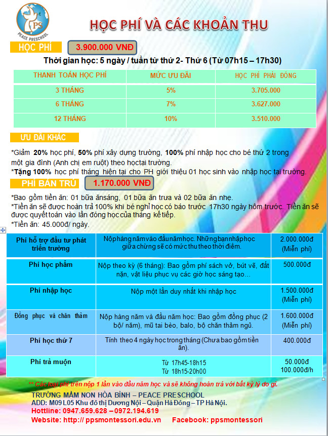 CHƯƠNG TRÌNH HỌC VÀ BIỂU HỌC PHÍ